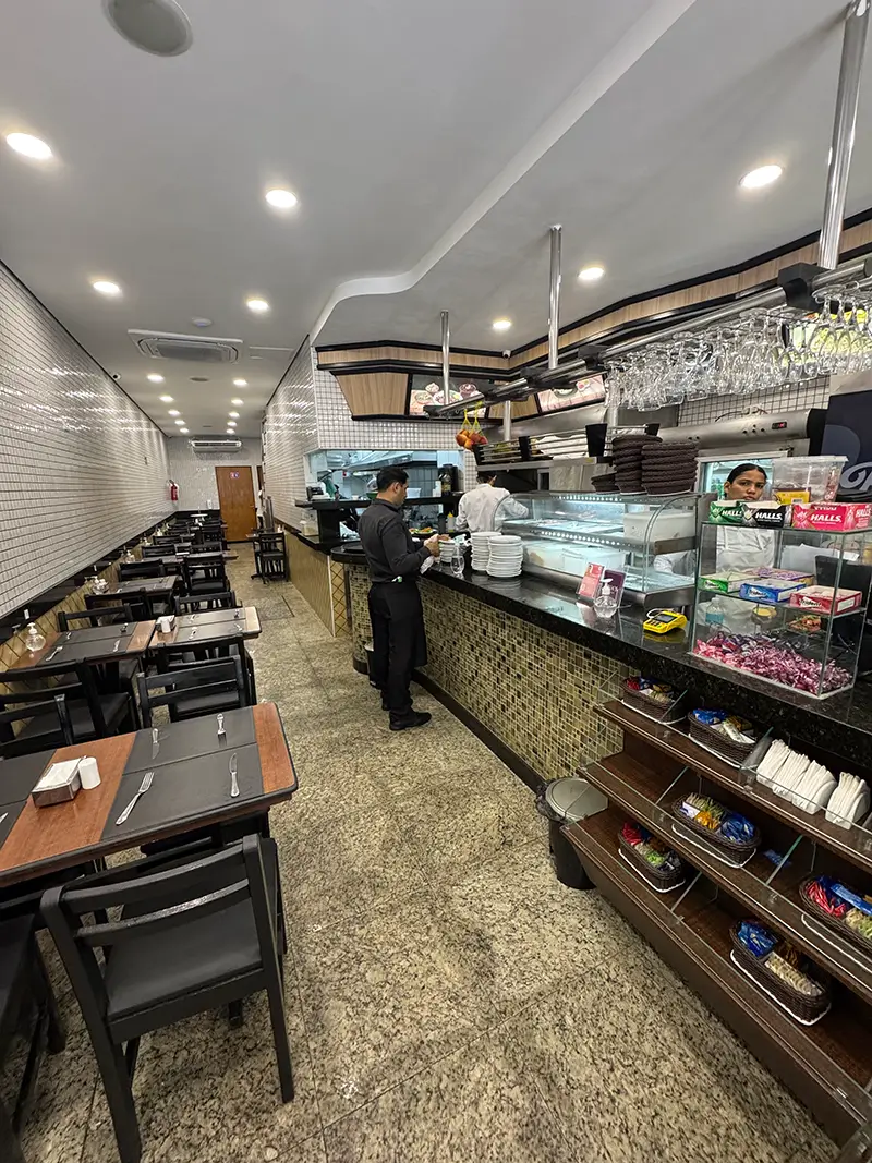 • Opções para comer no local ou pedir via delivery