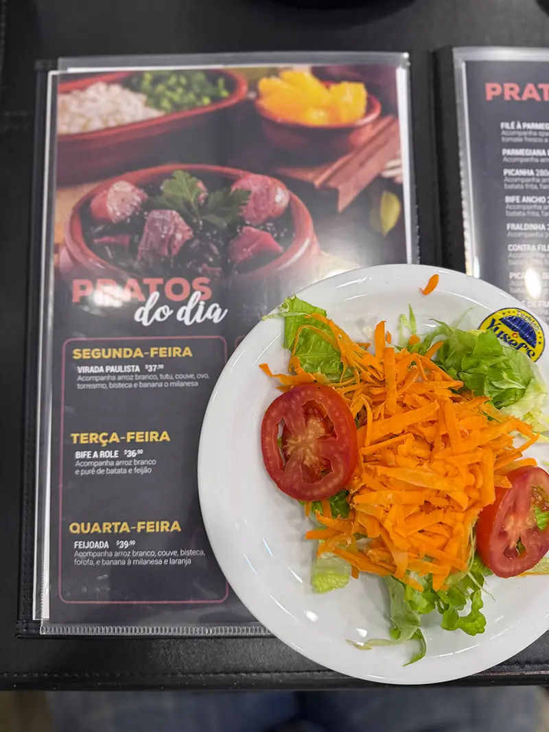 Para os amantes de uma boa carne, o local oferece cortes preparados na parrilla, garantindo sabor defumado e textura impecável.